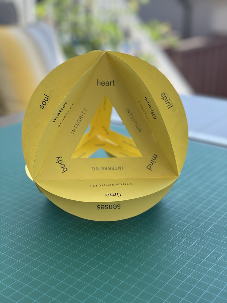 A model of our inner and outer architecture: mind, heart and body in time, energy, and matter creating synchronicity, synergy, and synarchy through interbeing, intuition, and integrity.