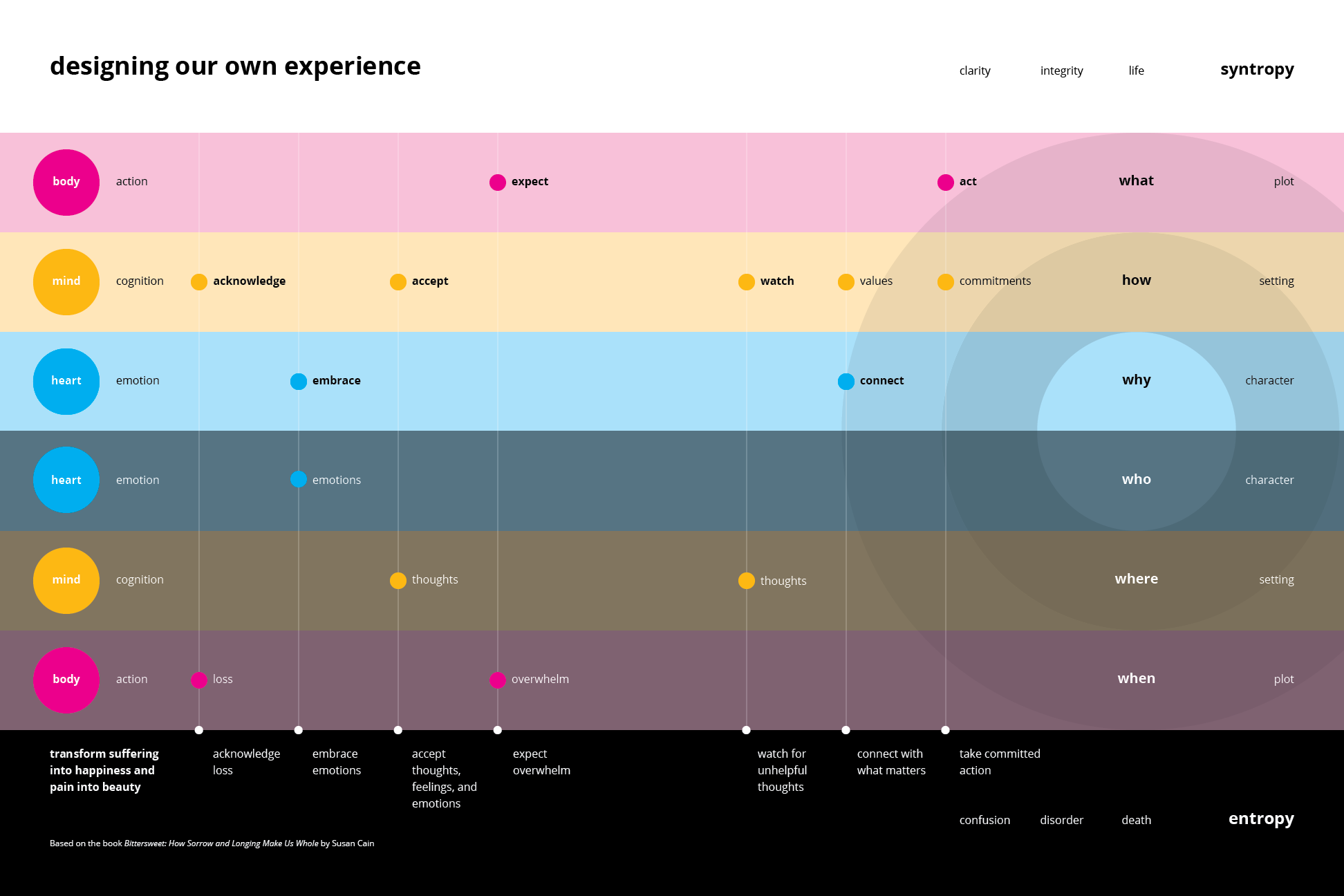 The body transforms cognition and emotion into action through the interface of thought and proprioception that allows mind and heart to interact with the physical world, building, maintaining, and holding together the many complex and diverse systems necessary to create the experience of life.