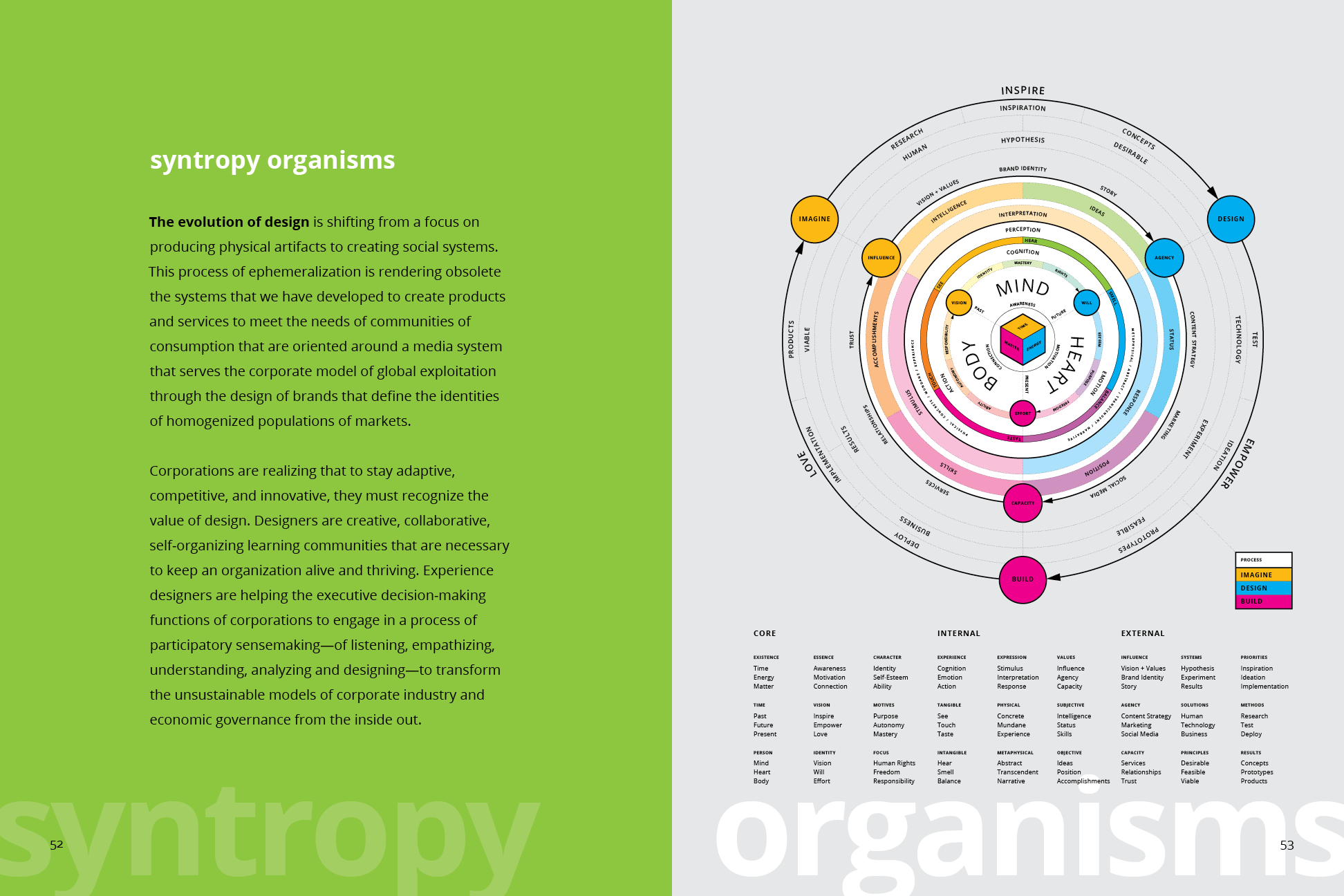 Corporations are realizing that to stay adaptive, competitive, and innovative, they must recognize the value of design. Designers are creative, collaborative, self-organizing learning communities that are necessary to keep an organization alive and thriving. Experience designers are helping the executive decision-making functions of corporations to engage in a process of participatory sensemaking—of listening, empathizing, understanding, analyzing and designing—to transform the unsustainable models of corporate industry and economic governance from the inside out.