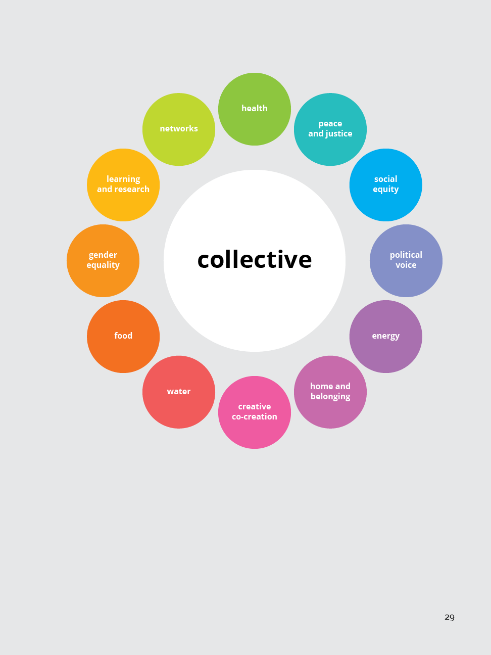 These categories of our social systems are borrowed from Kate Raworth’s Doughnut Economics with some regenerative language to replace the existing biases of the existing economic systems.