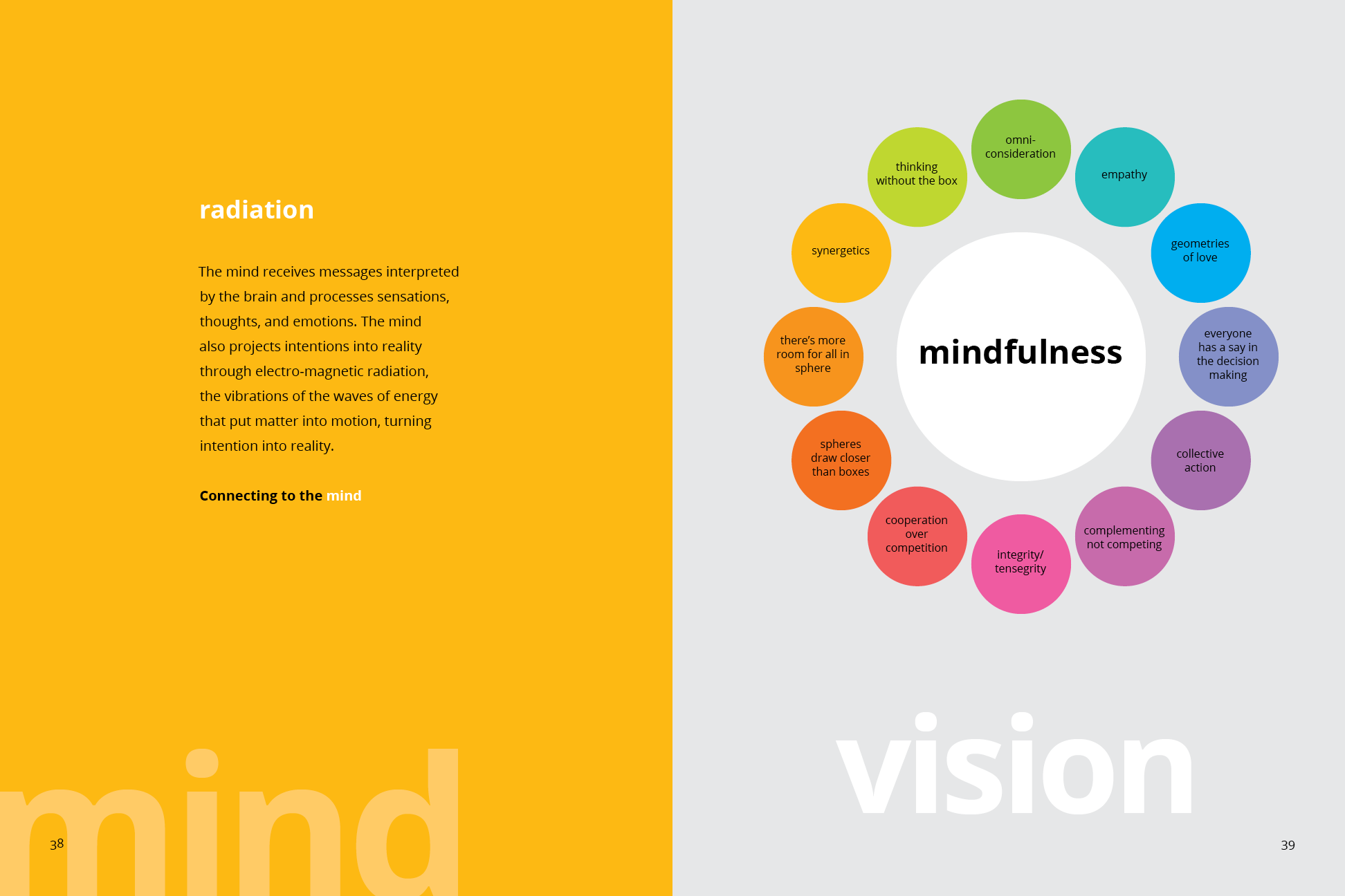 The mind receives messages interpreted by the brain and processes sensations, thoughts, and emotions. The mind also projects intentions into reality through electro-magnetic radiation, the vibrations of the waves of energy that put matter into motion, turning intention into reality.