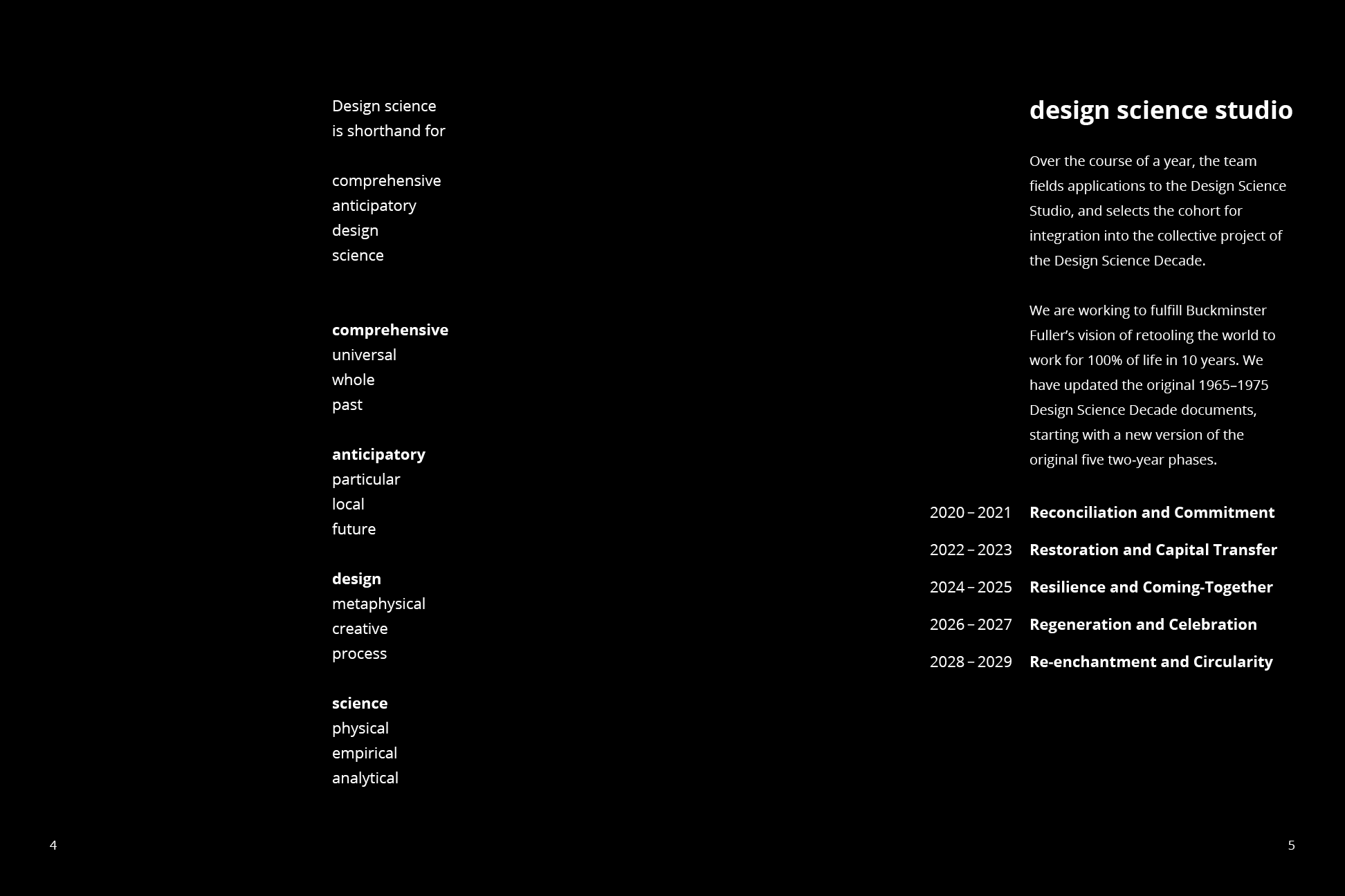 Over the course of a year, the team fields applications to the Design Science Studio, and selects the cohort for integration into the collective project of the Design Science Decade.