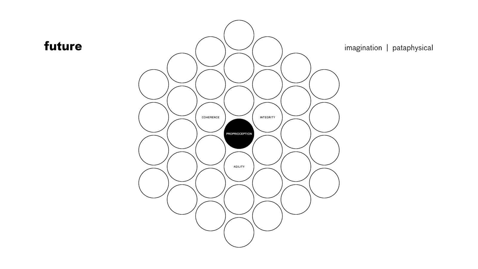 The pataphysical layer of the imagination and collective proprioception. The future is our blank canvas of possibilities, the medium on which we create in the here and now, in the realm of presence and awareness, interacting with the substrate of the past formations to bring about the adjacent possible.