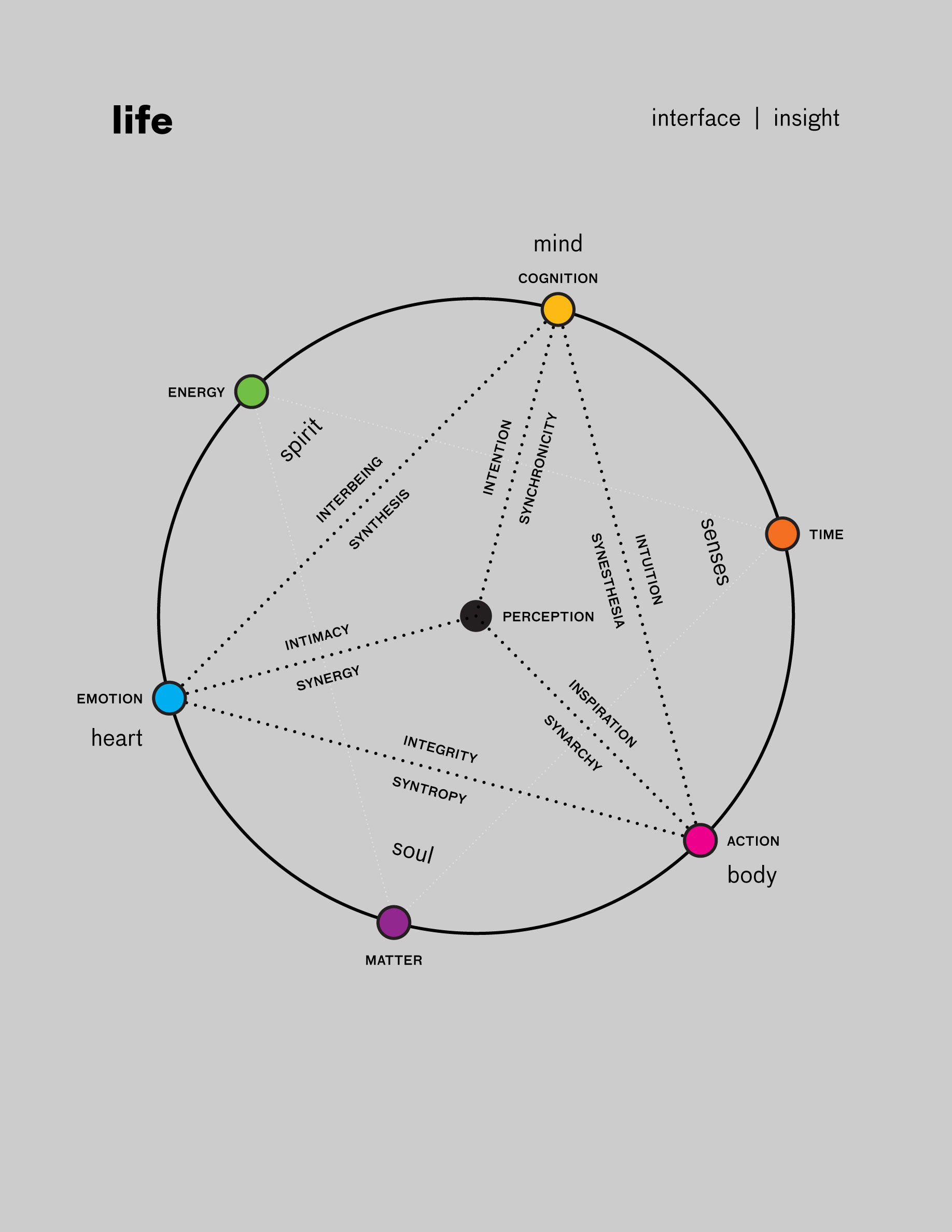 The diagram hints at the meaning and purpose. I titled the diagram with the word “Life.” I also added the words “interface” and “insight.” I am suggesting that life is an interface for experiencing insight. This has been my way of thinking about myself.