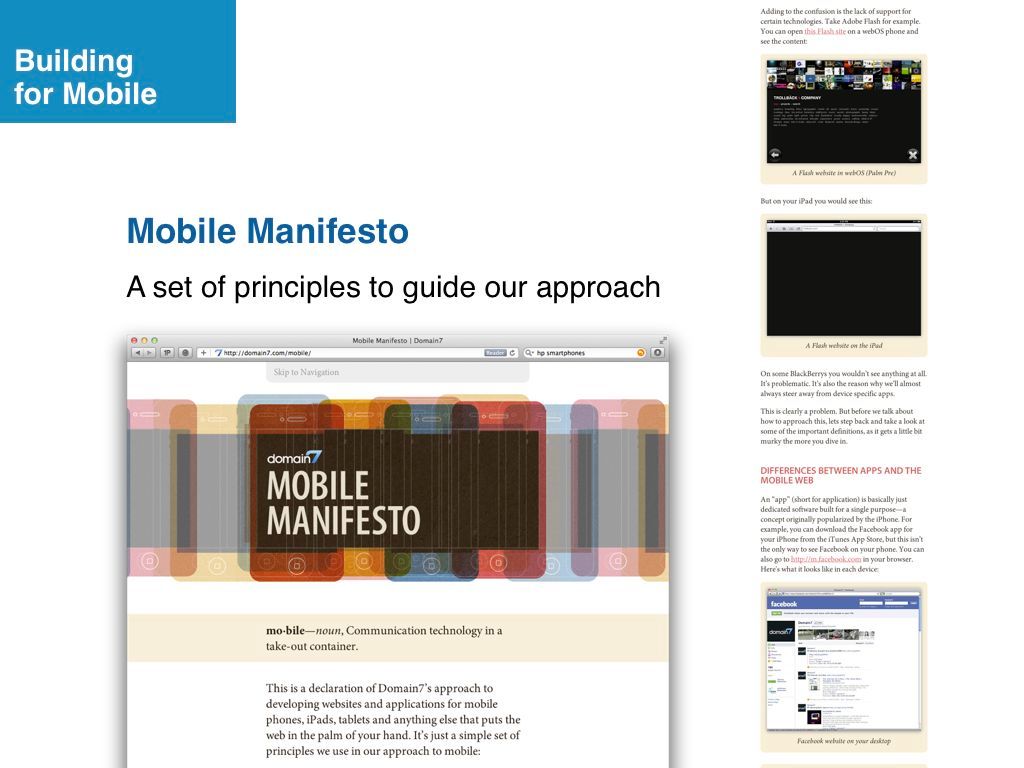 The full slide deck can be viewed on Behance or on SlideShare: Designing & Building for the Mobile Web.