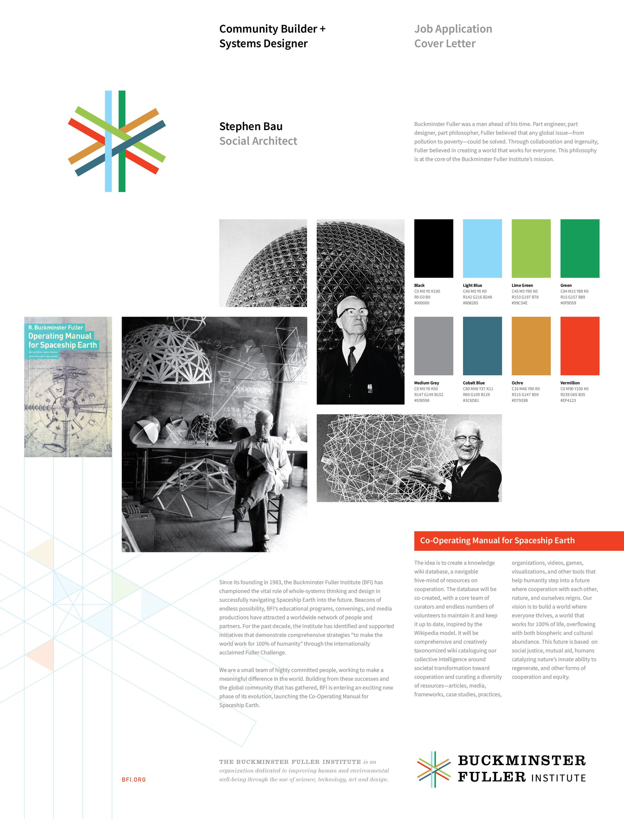 Whether I earn the title and position in the Buckminster Fuller Institute or not, Community Builder & Systems Designer for the Co-Operating Manual for Spaceship Earth is already an identity that I aspire to and that I am trying to live into.