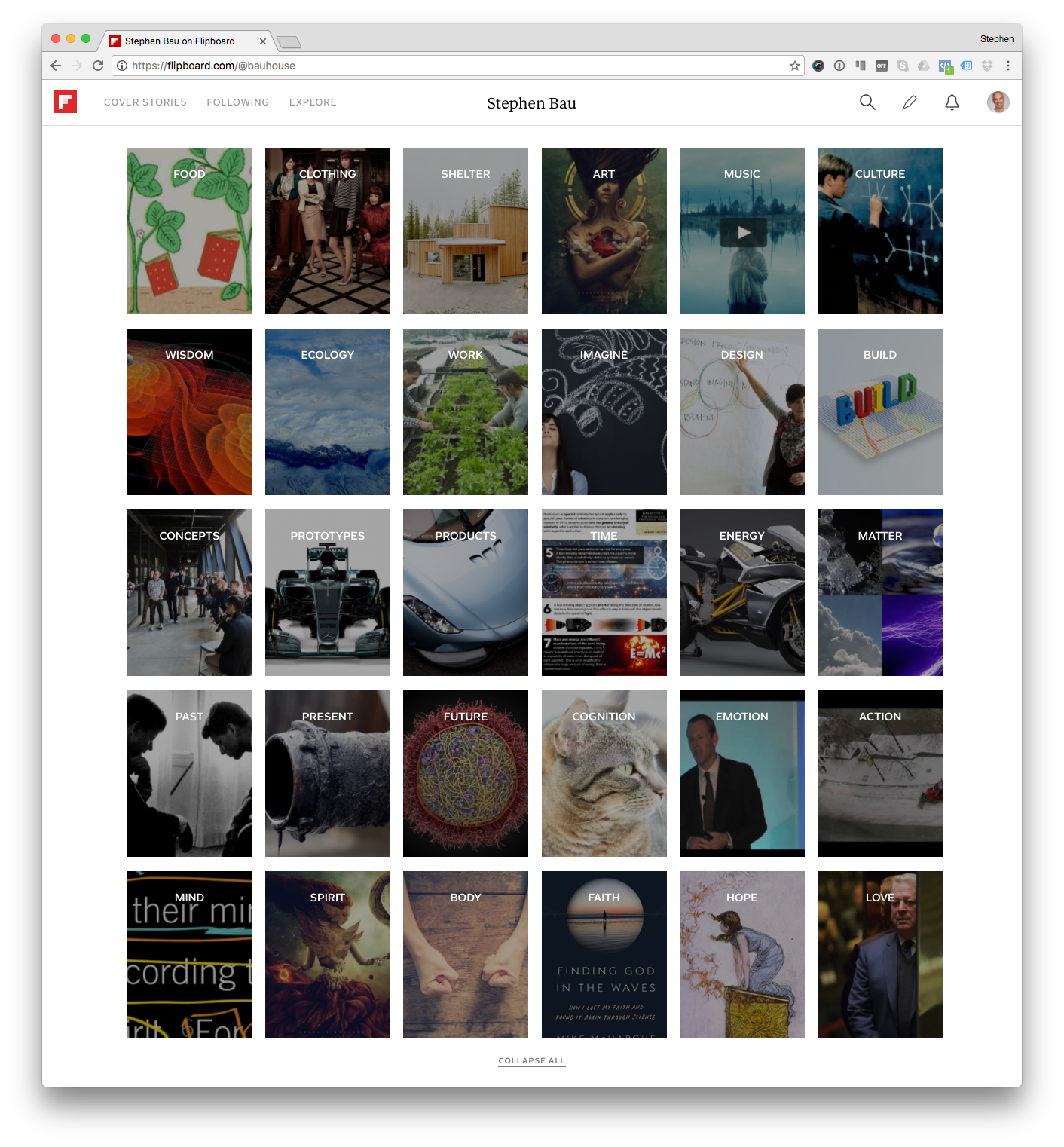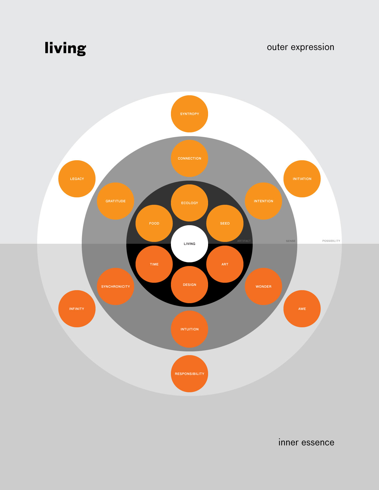 Last year, I was asked to participate in a series of workshops offered by the Design Science Studio in partnership with The Institute For Aliveness. I offered a workshop on Growing Senses for Co-Creation. Out of the process of preparing for that workshop, there emerged a renewed exploration of an idea I had years ago for a magazine and how I could reimagine these topics and categories that I had formulated for a general interest magazine that focused on the continuum from basic human needs to aspirations for transcendence: food, clothing, and shelter to faith, hope, and love.