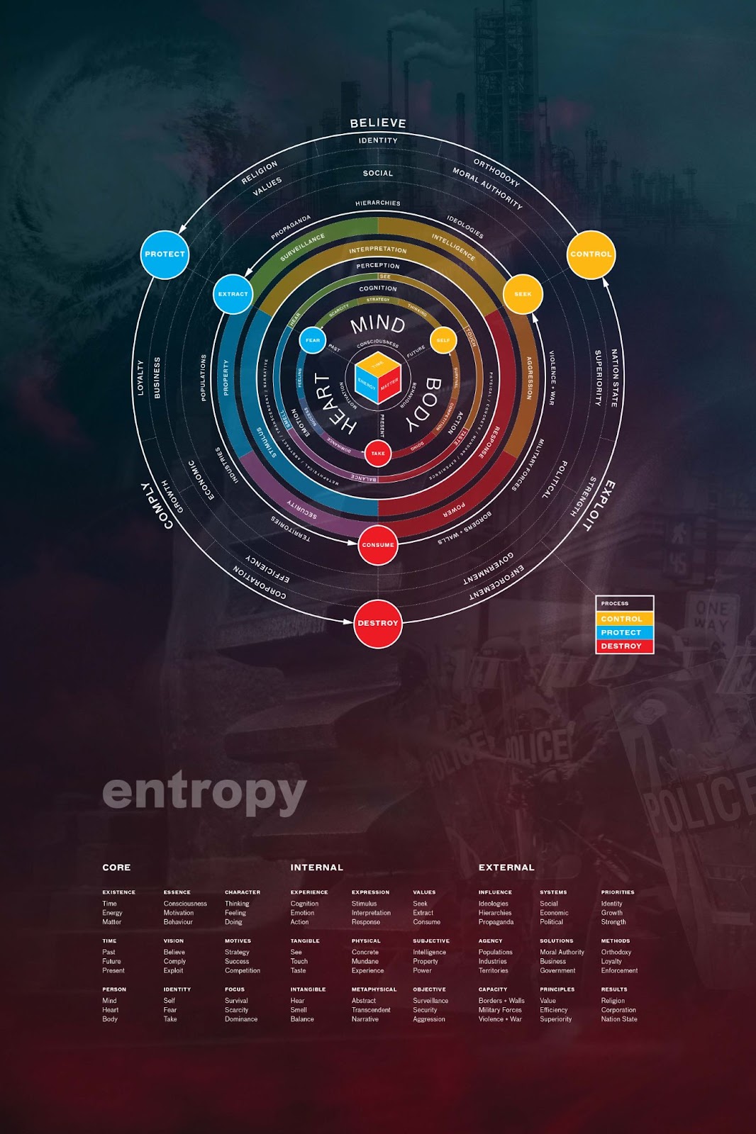 I created two posters that connect with the processes of life and death: syntropy and entropy. These also connect with an interface design for navigating metaphysical gravity. They depict the contrast between the politics of environmental destruction and the natural processes of organic and living systems.
